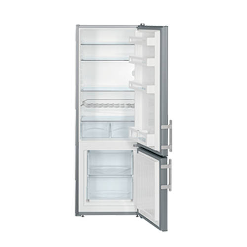 Liebherr CUef 2811-20 koelvriescombinatie met de superzuinige energieklasse A , een koelruimte van 210 liter en een 4 sterren vriesruimte van 53 liter. Deze koelvriescombinatie is uitgevoerd met een edelstalen SmartSteel deur (SmartSteel vermindert de zichtbaarheid van vingerafdrukken aanmerkelijk en is door de verdeling van het edelstaal bijzonder gemakkelijk te reinigen en bovendien veel ongevoeliger voor krassen) en staalgrijze zijkanten. De hevelgrepen zijn gemaakt van edelstaal. De CUef 2811-20 heeft onder andere 4 legplateaus ( 3 in hoogte verstelbaar) en 1 op de groentenlanden, een flessenrek, 2 koelvakken, 2 transparante diepvriesladen en een invriesvermogen van 4 kg per 24 uur. Tevens beschikt de koelvriescombinatie over LED verlichting, Coolplus, VarioSpace in het vriesvak en SmartFrost. Met SmartFrost wordt de rijpvorming in het interieur en op de levensmiddelen sterk verminderd. Hierdoor is ontdooien zelden nodig. De binnenwanden zijn glad en daardoor heel simpel te reinige Lees meer over de Liebherr Cuef 2811 20 Koelvriescombinatie van liebherr in de productgroep huishouden